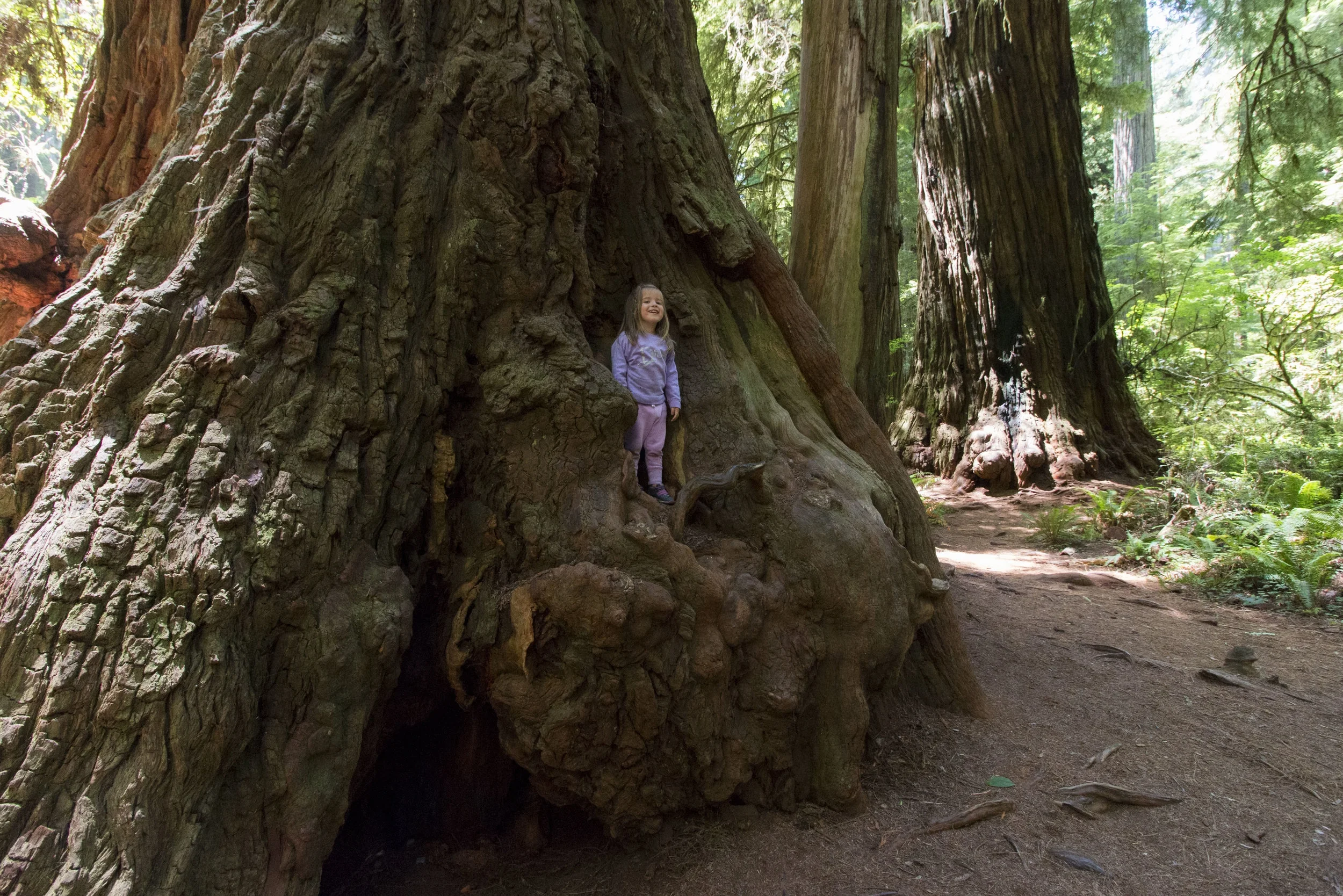 Known as "goosepens" large cavities are formed from fires in living redwood trees and make for some of the greatest hiding spots I've ever seen.